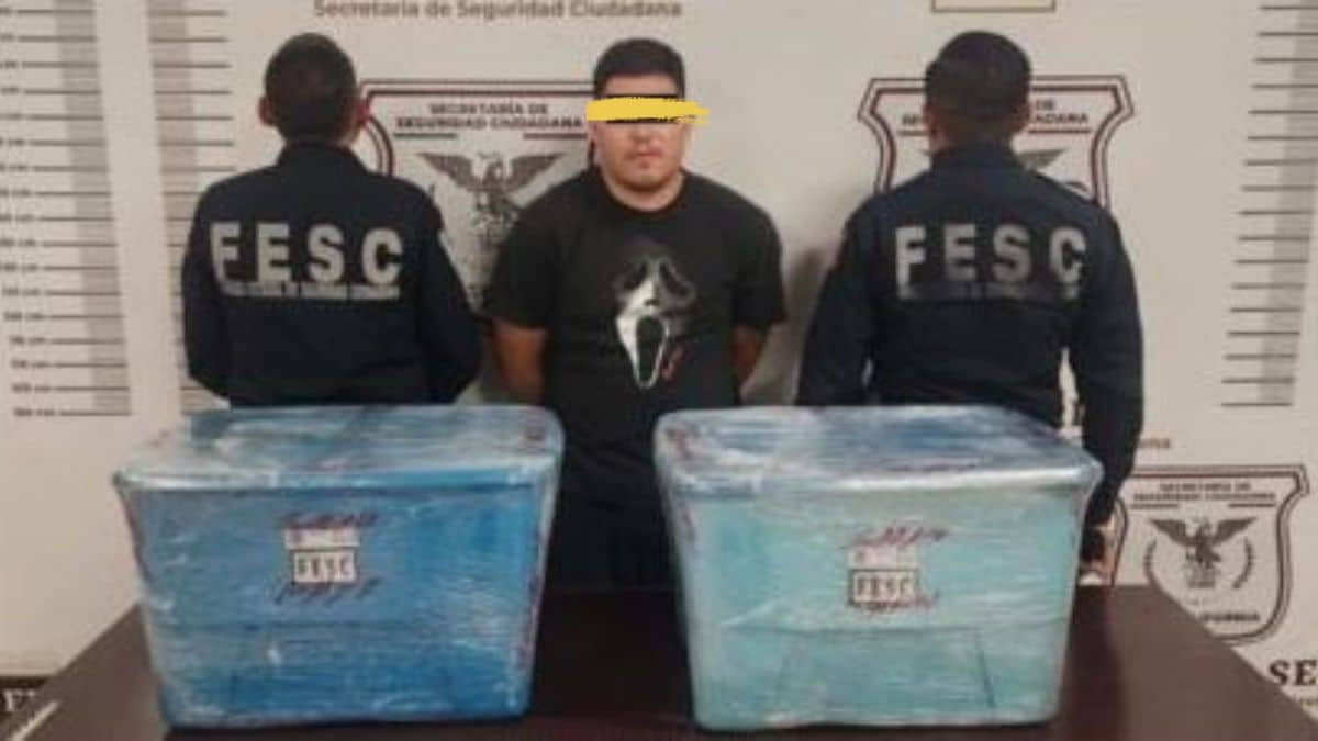 La detención de Marlon “N” aconteció luego de que los agentes vieron a un hombre sacar cajas azules de la cajuela de un automóvil Kia Soul, modelo 2014, con placas del Estado de California, el cual estaba estacionado sobre la calle Miguel Guerrero entre las calles 12 y 13 con las luces intermitentes encendidas.
