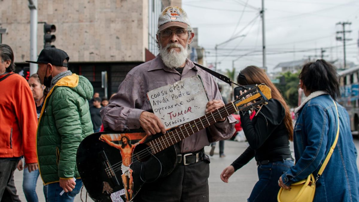 “El covid lo cambió todo. No me quedó más opción que tomar mi guitarra y salir a las calles a cantar, feo, pero con sentimiento”, expresó Briseño.