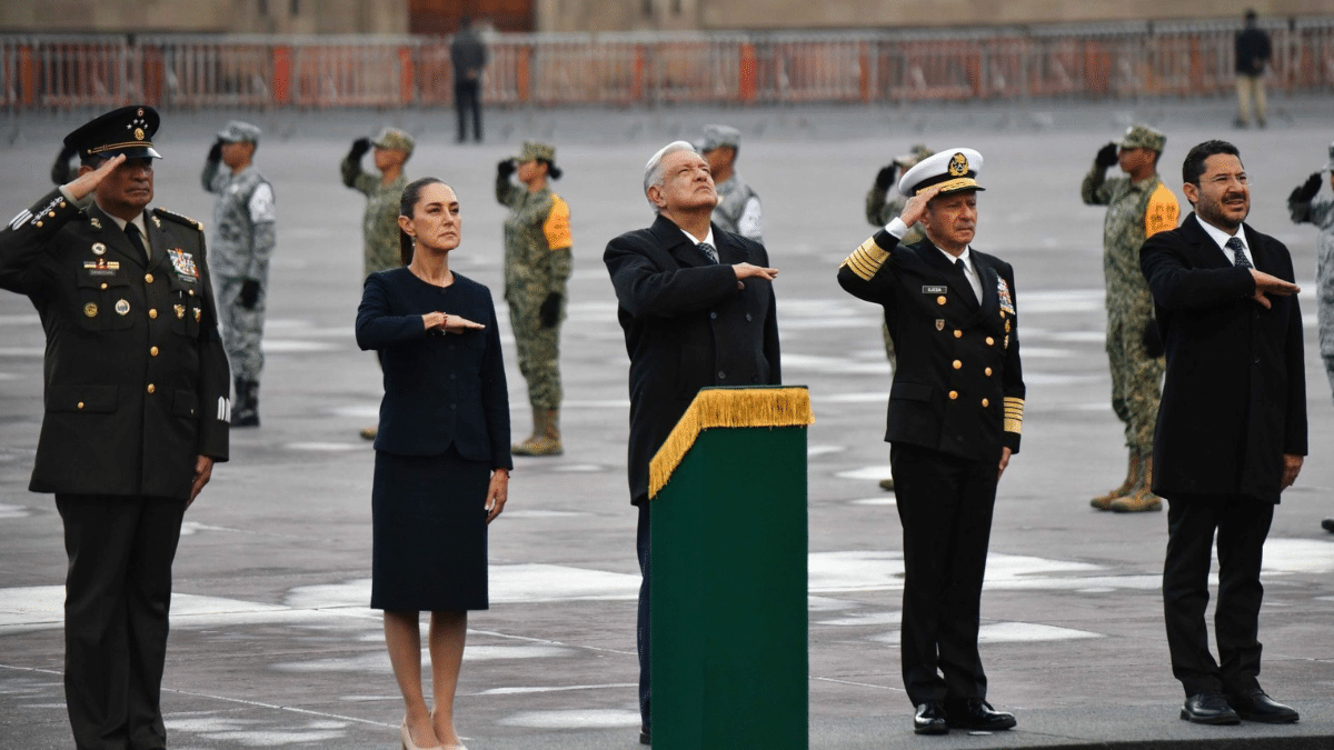 El acto dio inicio a las 07:15 horas, cuando el presidente López Obrador, acompañado de Sheinbaum y otras figuras políticas, salió de la puerta de honor de Palacio Nacional. Entre los asistentes destacados se encontraban Martí Batres, jefe de Gobierno de la Ciudad de México; Luisa María Alcalde, secretaria de Gobernación; Rosa Icela Rodríguez, secretaria de Seguridad y Protección Ciudadana; Luis Cresencio Sandoval, secretario de la Defensa Nacional; José Rafael Ojeda Durán, secretario de Marina; y Carlos Freaner Figueroa, presidente de la Cruz Roja Mexicana.