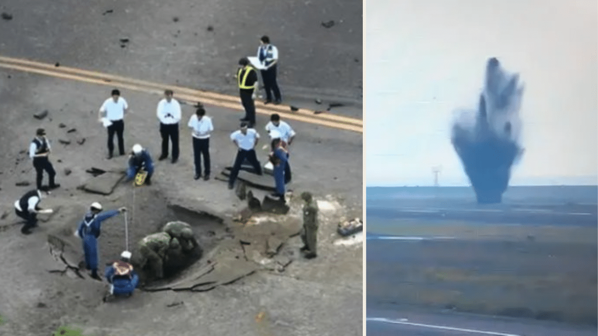 Japón.- Una bomba de la Segunda Guerra Mundial explotó en el Aeropuerto de Miyazaki, Japón, el pasado miércoles, causando un cráter de 7 metros de ancho y 1 metro de profundidad, lo que provocó la cancelación de más de 90 vuelos, según informó el Ministerio de Transporte de Japón. El incidente no dejó heridos, aunque generó preocupación entre las autoridades locales debido a la cercanía de un avión en las inmediaciones del sitio de la explosión. Este avión había pasado por la zona solo dos minutos antes de la detonación, lo que evitó un accidente potencialmente catastrófico.