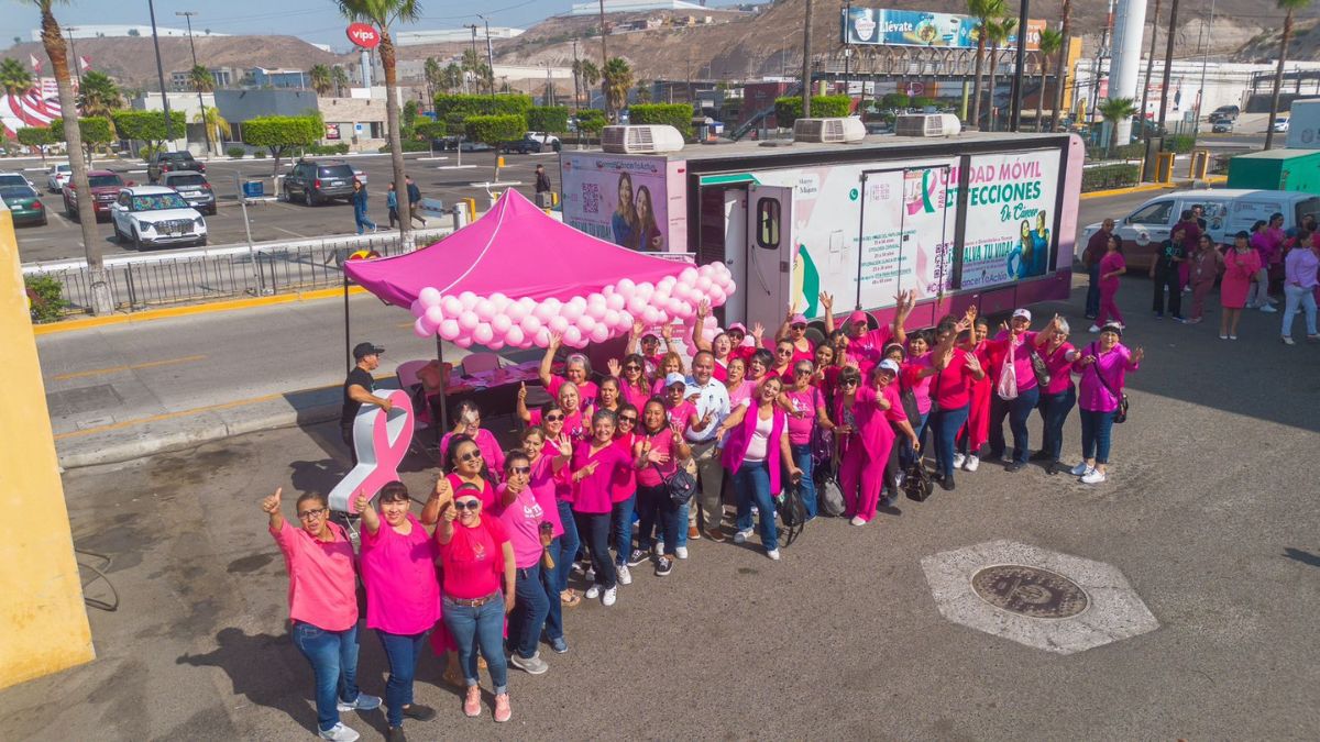 Tijuana, Baja California.- Para apoyar con la detección de cáncer de mama durante el mes (octubre) de sensibilización de esta enfermedad, se instaló un Módulo Rosa Móvil en Macroplaza.