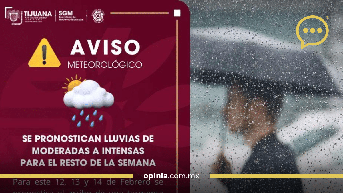 Tijuana .- Ante el pronóstico de lluvias a partir de este miércoles 12 de febrero, el Ayuntamiento de Tijuana hace un llamado a la ciudadanía para tomar precauciones y atender las recomendaciones de Protección Civil.