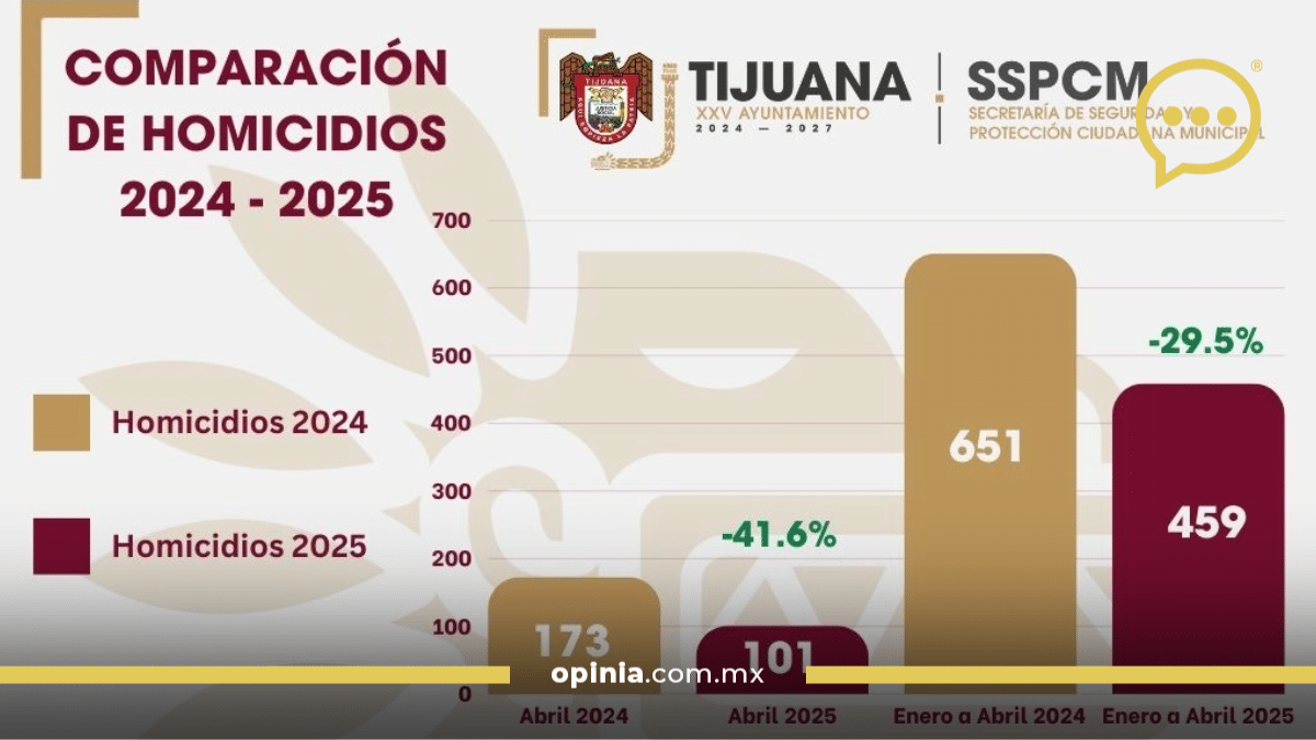 De acuerdo con cifras preliminares de la Fiscalía General del Estado, del 1 de enero al 30 de abril de 2025 se registraron 459 homicidios dolosos, en comparación con los 651 casos reportados en el mismo periodo del 2024, lo que representa una reducción del 29.5%. Destaca particularmente el mes de abril, donde se pasó de 173 homicidios en 2024 a 101 en 2025, lo que significa una disminución del 41.6% respecto al mismo mes del año anterior.
