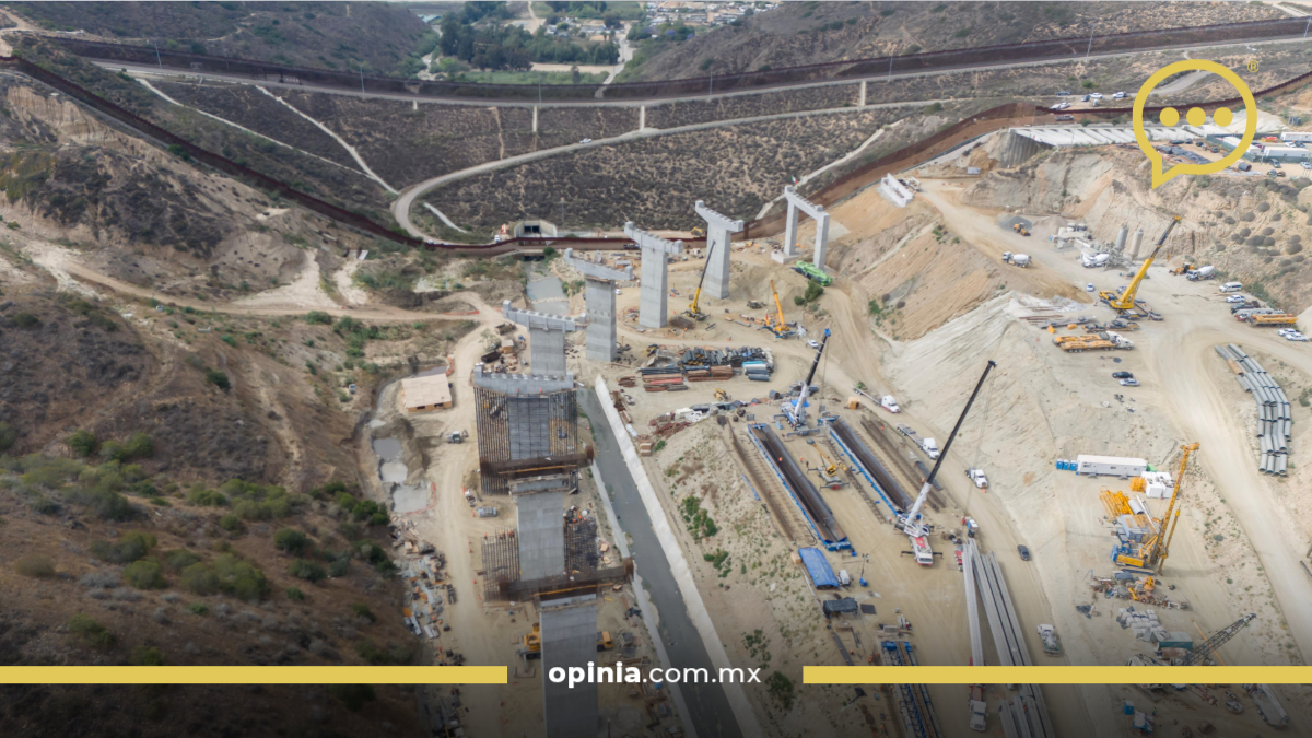 Tijuana, B.C. — La construcción del viaducto elevado continúa en el Cañón del Matadero, donde ya se pueden observar grandes pilares de concreto junto a la frontera con EE.UU. Obreros y grúas trabajan en la instalación de los soportes que sostendrán la vialidad.
