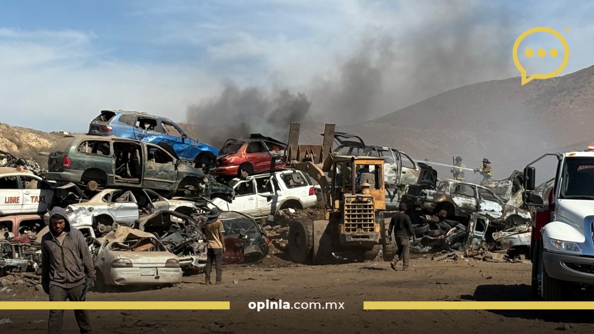 Un fuerte incendio se registró este martes en el corralón de Grúas ATT, ubicado frente a la colonia Maclovio Rojas, sobre la carretera libre Tijuana-Tecate.