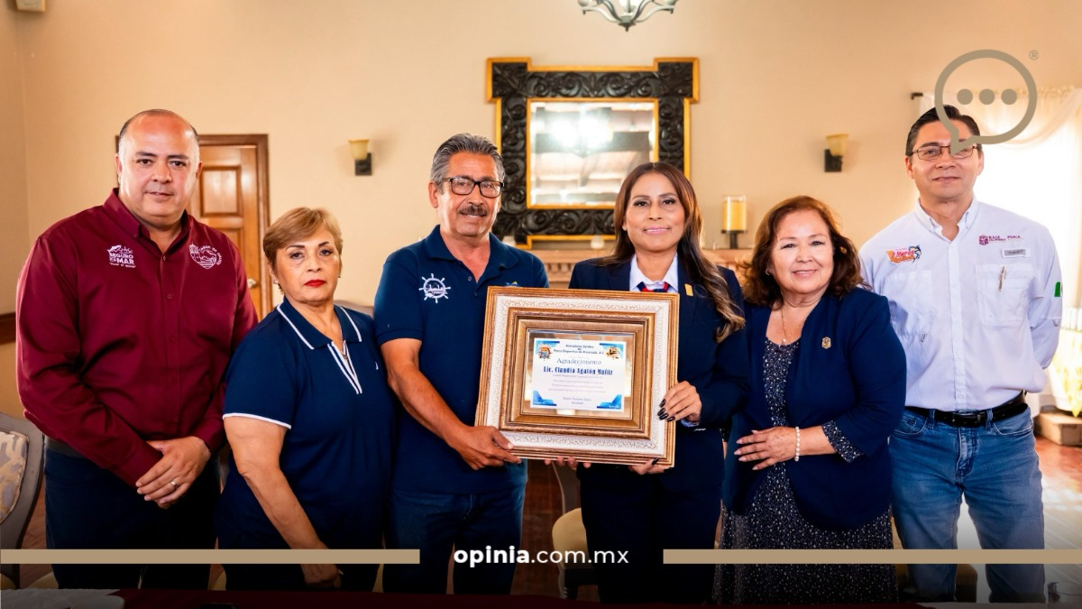 Durante una reunión convocada por Armadores Unidos de Pesca Deportiva A.C., en la que recibió un reconocimiento por el apoyo brindado en los últimos 15 años en la organización del Torneo Familiar de Pesca Deportiva, la presidenta municipal reiteró que su administración trabaja en la dignificación de este importante sector.