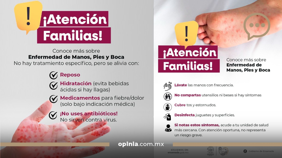 Ensenada, B.C.- Como parte de las acciones de medicina preventiva, el gobierno de la alcaldesa Claudia Agatón Muñiz hizo un llamado a la población a reforzar las medidas de higiene y cuidado, principalmente en la niñez, para evitar contagios de la enfermedad de Manos, Pies y Boca (Virus Coxsackie).
