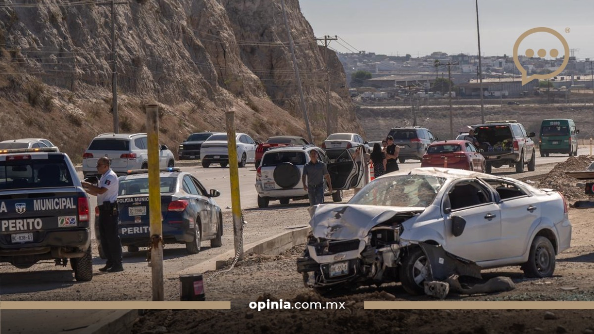 De acuerdo con testigos, la conductora que viajaba a bordo de un automóvil Chevrolet Aveo color gris, con placas de Baja California, impactó la parte trasera de un Toyota RAV4 en el que se trasladaba una familia.