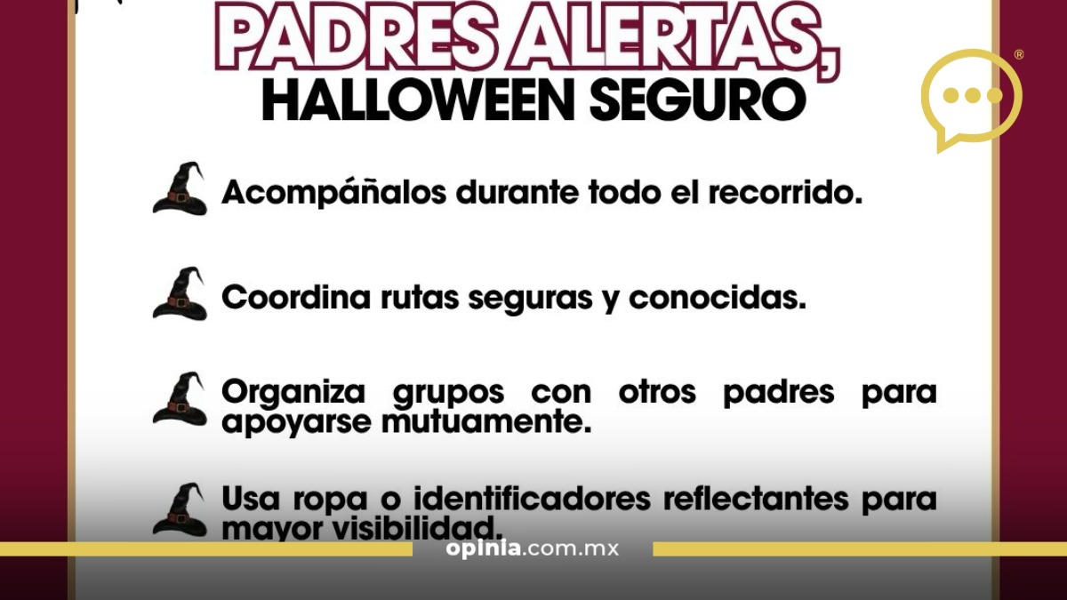La institución exhortó a reportar al 9-1-1 cualquier situación sospechosa o acto delictivo, además de verificar los dulces recibidos antes de consumirlos. “La prevención es el primer paso para un Halloween seguro y divertido”, destacó la SSPCM.