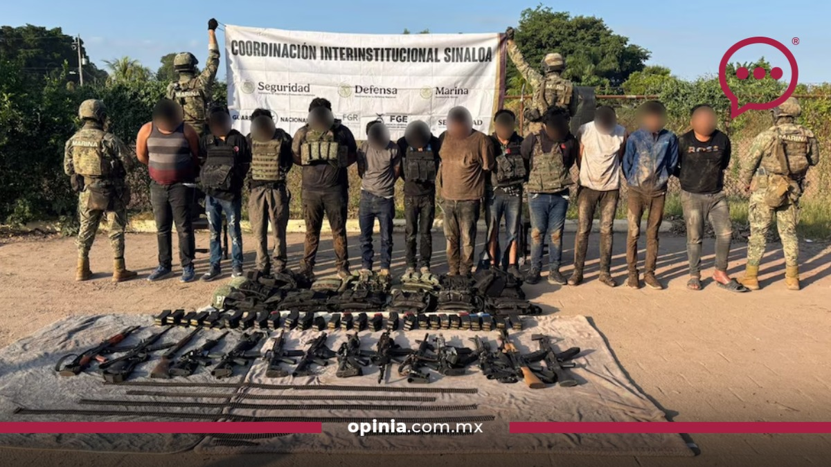 Tras repeler la agresión, los marinos detuvieron a 13 hombres, asegurando armamento de alto calibre, cargadores, vehículos, equipo táctico y un sombrero con insignias del grupo criminal.