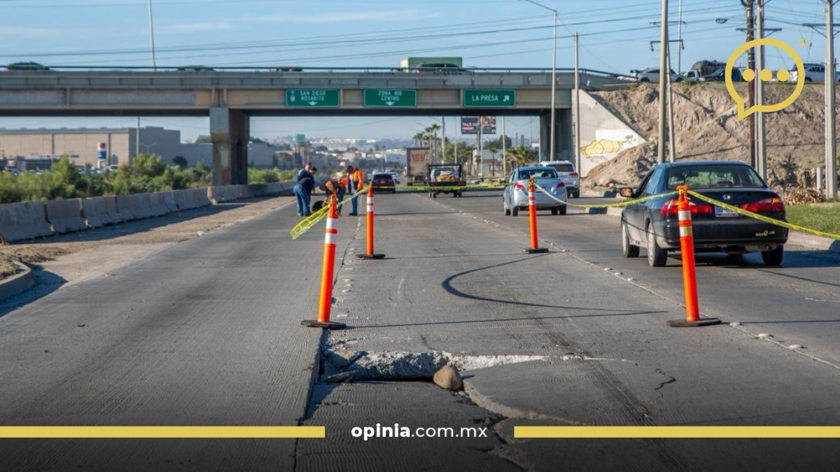 Tijuana .– Un nuevo socavón se formó en la Vía Rápida Oriente, sobre el carril central y a pocos metros del puente Simón Bolívar, provocando un caos vial que desde el lunes mantiene largas filas de vehículos en horas pico. Automovilistas reportaron que el hundimiento comenzó a observarse desde el domingo 23 de noviembre, sin que hubiera intervención inmediata.