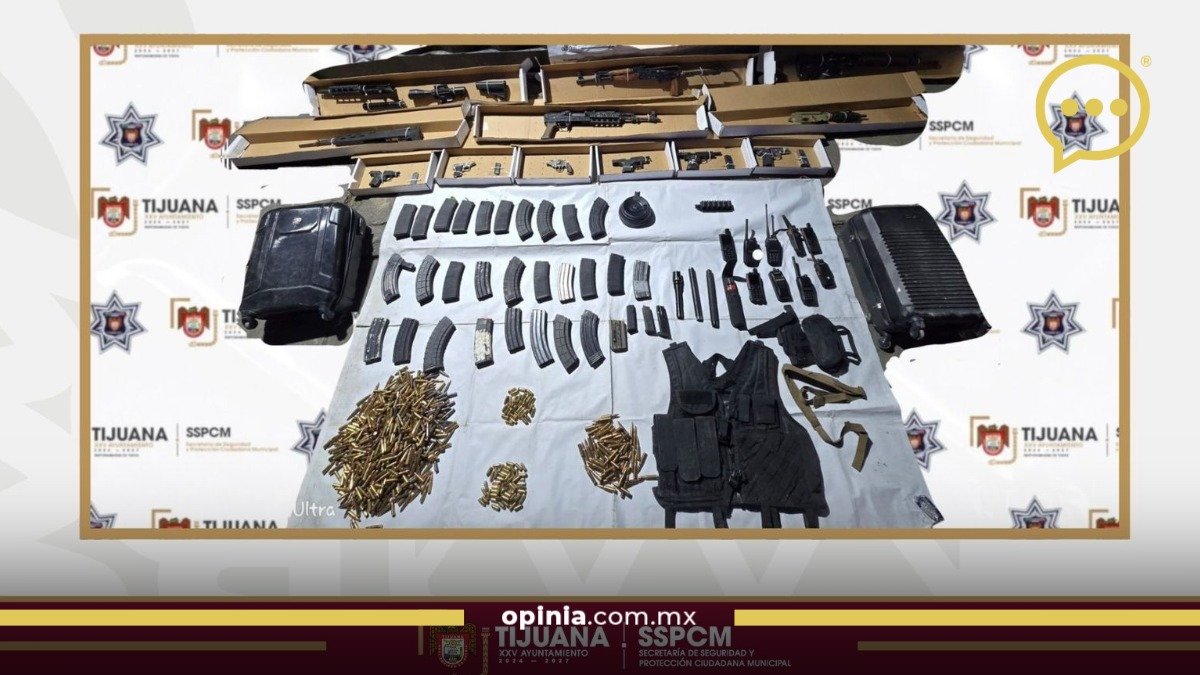 Tijuana .- La Secretaría de Seguridad y Protección Ciudadana Municipal (SSPCM) de Tijuana aseguró 11 armas de fuego, 33 cargadores y 495 cartuchos útiles de distintos calibres, además de ocho radiocomunicadores, un chaleco antibalas y diverso equipo relacionado con armamento, tras un reporte ciudadano recibido a través del número de emergencias 9-1-1.