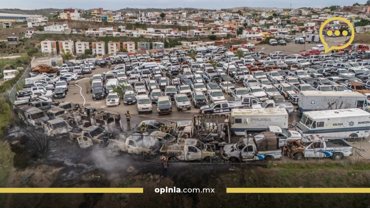 Tijuana, Baja California .- Un fuerte incendio se registró la tarde de este martes 30 de diciembre en un yonke ubicado sobre la avenida Sur, en la delegación Santa Fe, donde varias patrullas de la Policía Municipal resultaron totalmente calcinadas.