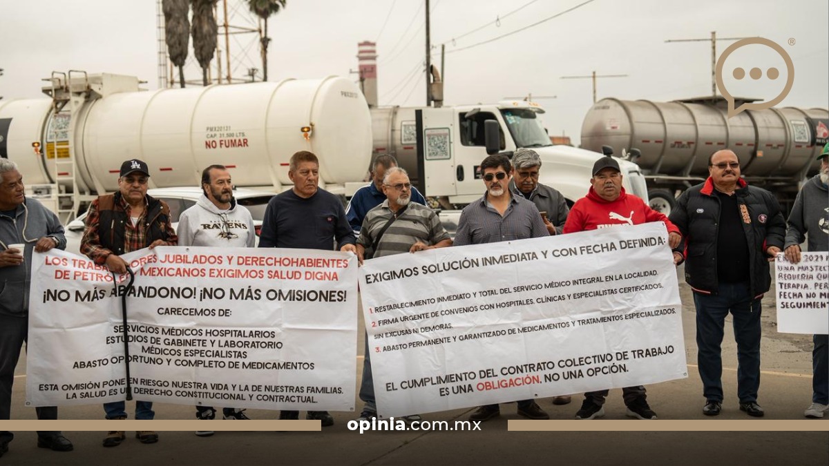 Un grupo de jubilados de Petróleos Mexicanos (PEMEX) se manifestó de manera pacífica en las instalaciones de la paraestatal en Rosarito para exigir mejoras en la atención médica y el cumplimiento de su contrato colectivo.