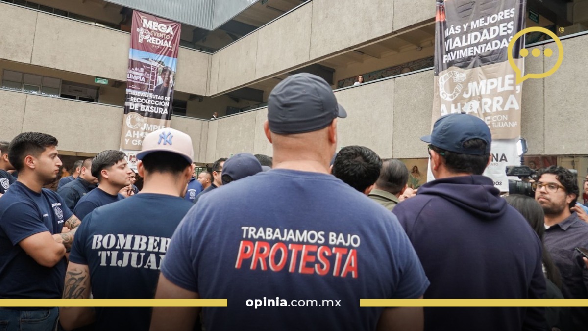 Elementos del cuerpo de bomberos de Tijuana se manifestaron de manera pacífica en el Palacio Municipal para exigir mejoras en sus condiciones laborales, principalmente en materia salarial y de estabilidad laboral.