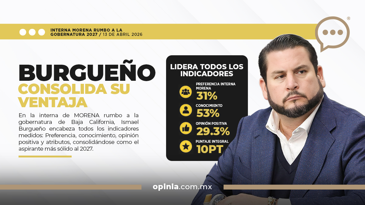 En la ruta hacia la gubernatura de Baja California en 2027, la más reciente encuesta de Enkoll no solo muestra tendencias, sino una configuración clara dentro de Morena: Ismael Burgueño se posiciona como el aspirante con mayor solidez en prácticamente todos los indicadores medidos.