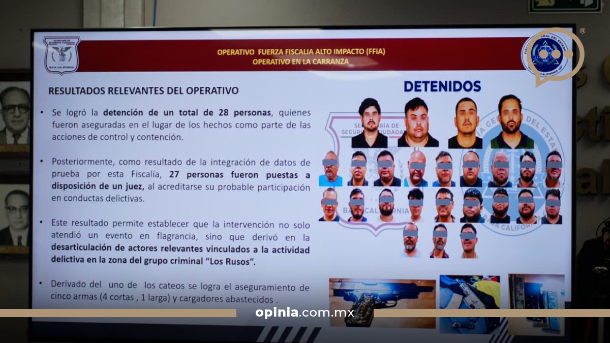 Como resultado, se logró el aseguramiento de diversas armas de fuego y la detención de los presentes, de los cuales 27 fueron puestos a disposición de un juez.