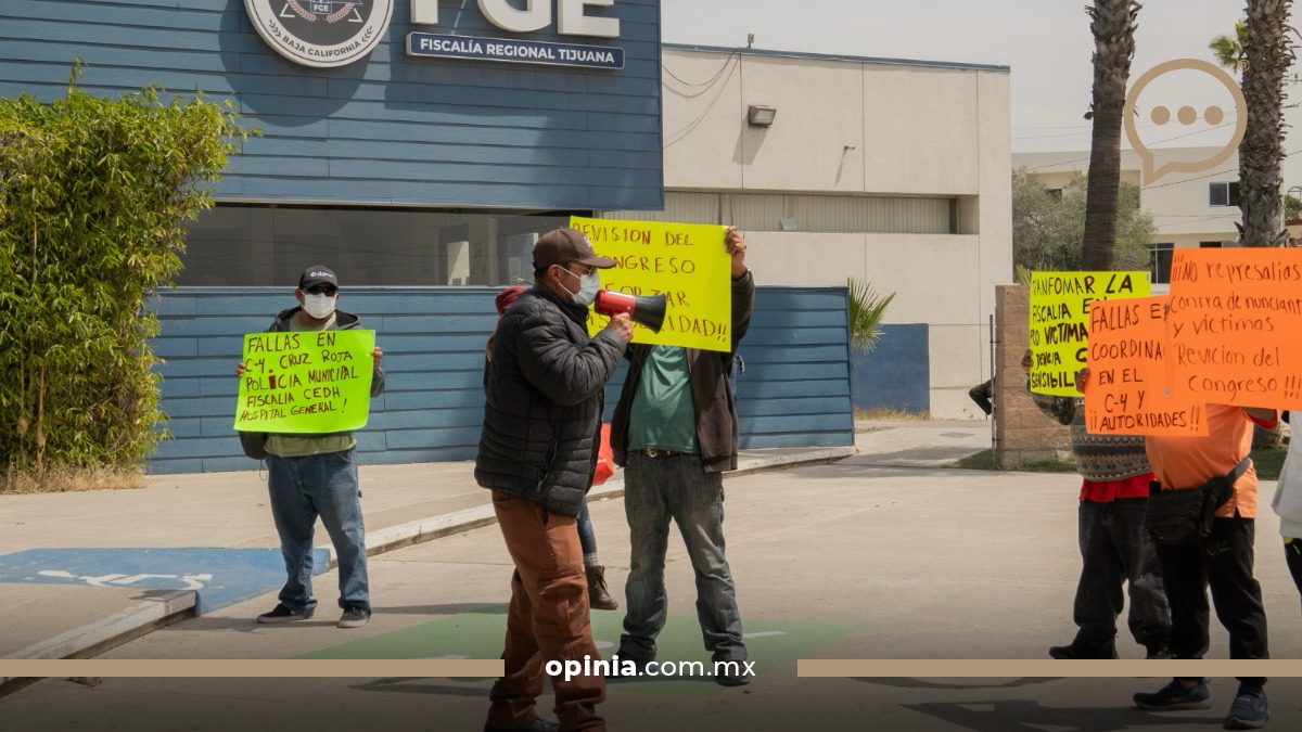 Un grupo de migrantes del albergue Ágape se manifestó frente a las instalaciones de la Fiscalía General del Estado (FGE) en la delegación La Mesa, para exigir avances en la investigación de un presunto caso de privación ilegal de la libertad y tortura contra un joven migrante.